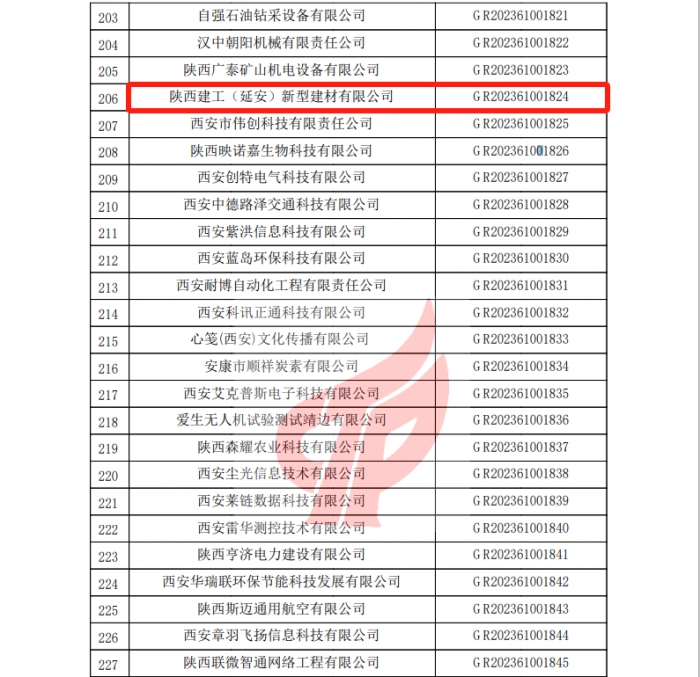 近日,全國(guó)高新技術(shù)產(chǎn)業(yè)企業(yè)認(rèn)定管理工作領(lǐng)導(dǎo)小組辦公室公布了2023年陜西省認(rèn)定的第一批高新技術(shù)企業(yè)名單,集團(tuán)新型建材產(chǎn)業(yè)基地【陜西建工(延安)新型建材有限公司】通過國(guó)家級(jí)高新技術(shù)企業(yè)認(rèn)定。